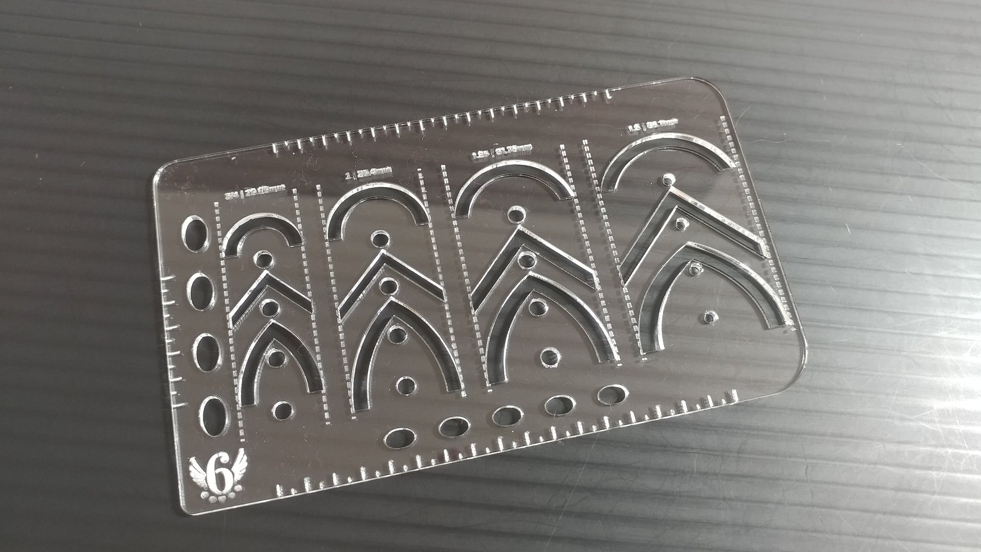 The material used for this template is sourced at a US-based business in California and is high-grade cast acrylic sheet at 0.093”|2.3mm thickness. This provides a flexible yet strong material that will withstand heavy use for many years.