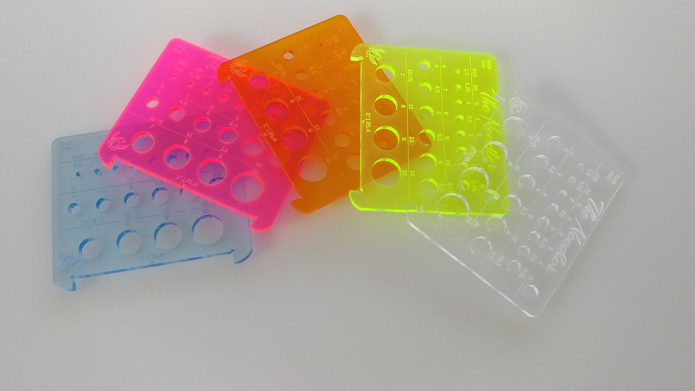 Meet The "Needler" – the compact, indispensable knitting needle gauge designed for accuracy and convenience.